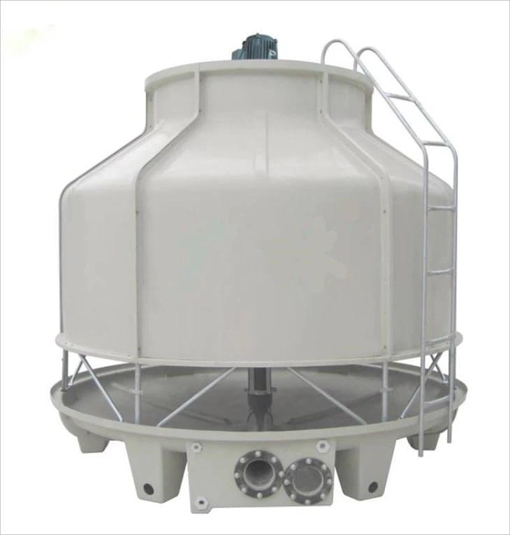 يتم جمع الماء المبرد في حوض أسفل البرج ليعود مرة أخرى للاستخدام