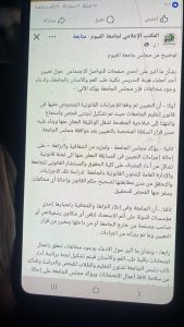 رفض مكتب رئيس الجامعة استلام المذكرة القانونية فور تقديمها